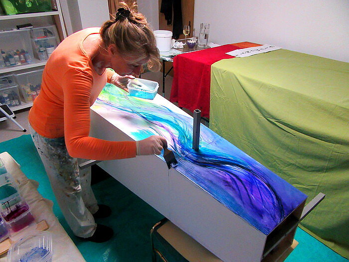 Melitta WINKLER.ART on FIRE und ihre farbenfrohe Welt der innovativen FEINSCHICHT-Malerei präsentiert ein außergewöhnliches Kunstprojekt, das durch abstrahierte und lebendige Kunstwerke in harmonischer FEINSCHICHT- Technik überzeugt. In diesem kreativen Prozess werden leuchtende Aquarellfarben in einer Vielzahl von Malprozessen (bis zu 70-mal) sorgfältig aufgetragen, schichtweise entfernt und schließlich fixiert. Das Ergebnis sind extrem tiefenwirksame FEINSCHICHT-Kreationen. Entdecken Sie die einzigartigen Inspirationen von Melitta WINKLER und lassen Sie sich in einer ihrer Ausstellungen im In -oder Ausland verzaubern, Ihre abstrakte Kunst - eine Welt voller Farben, Formen und Dimensionen.